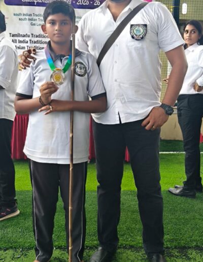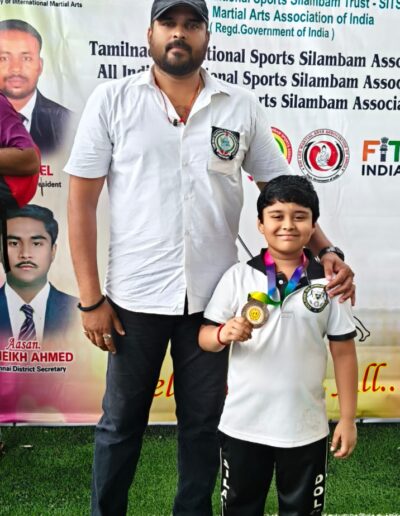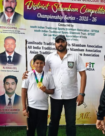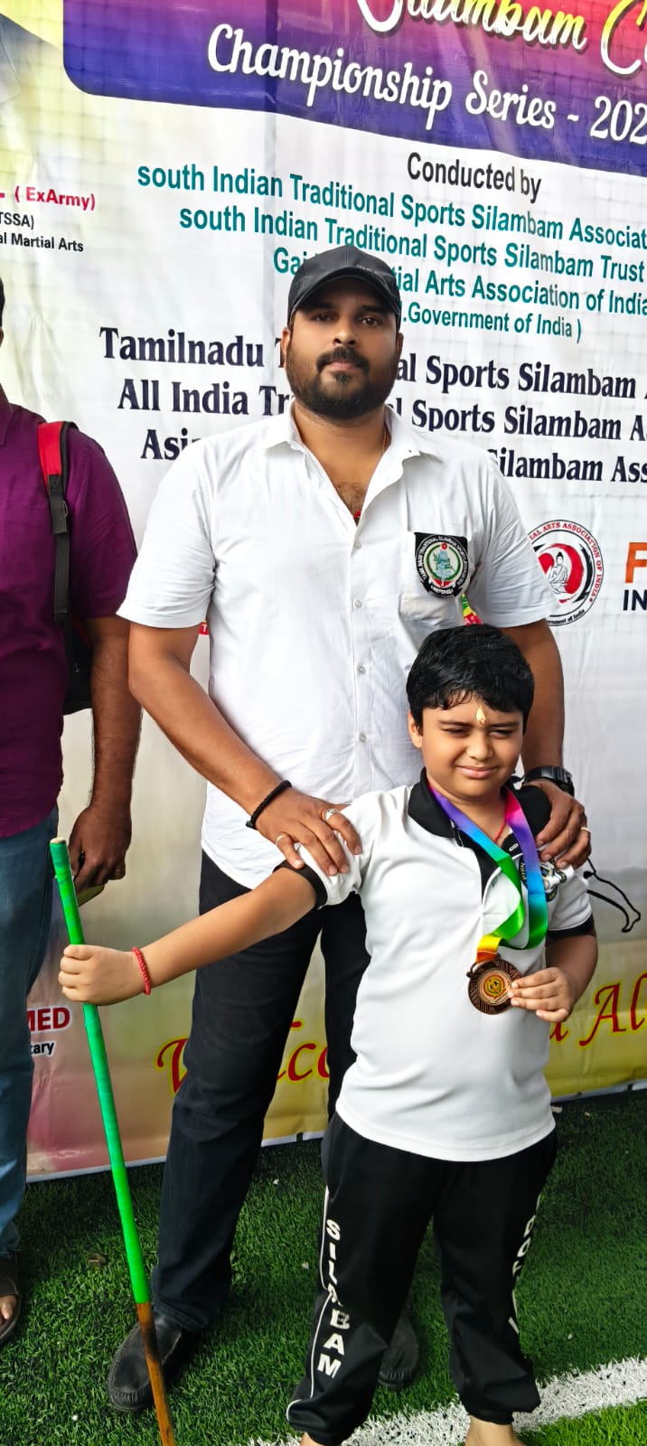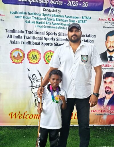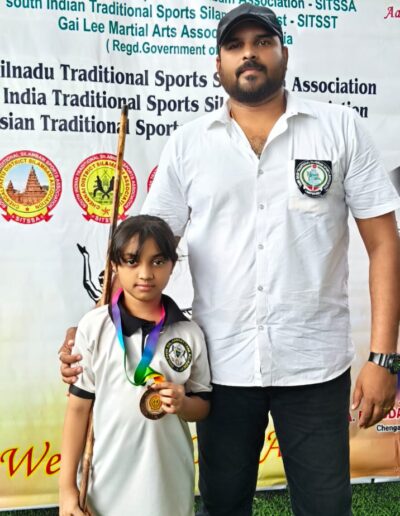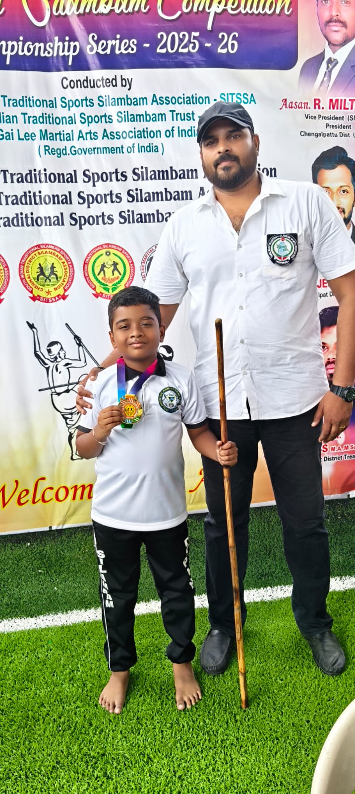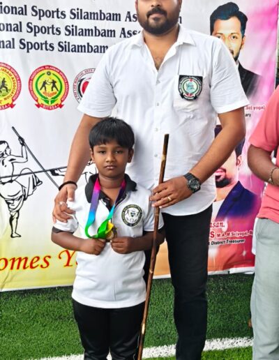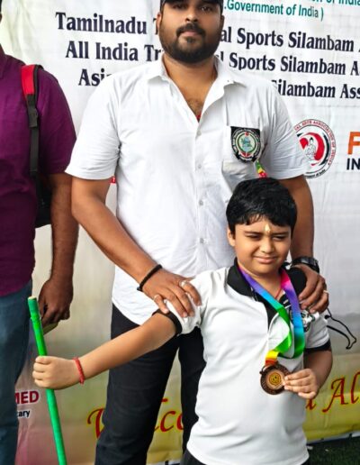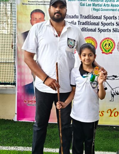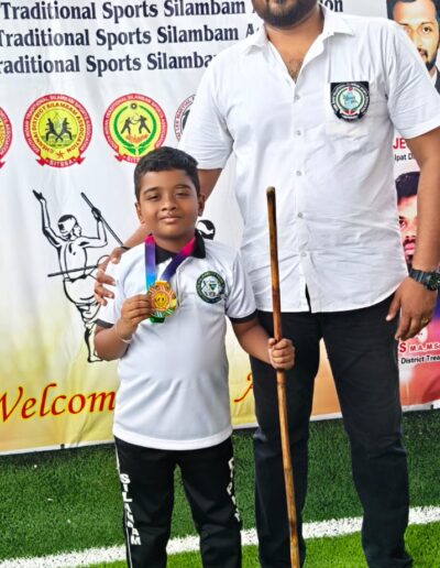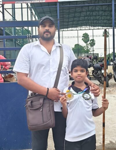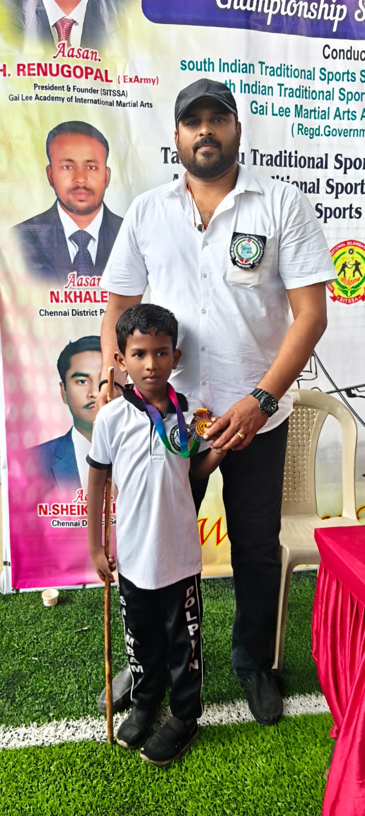 Sanjeev winning the 1st place in State level Silambam championship