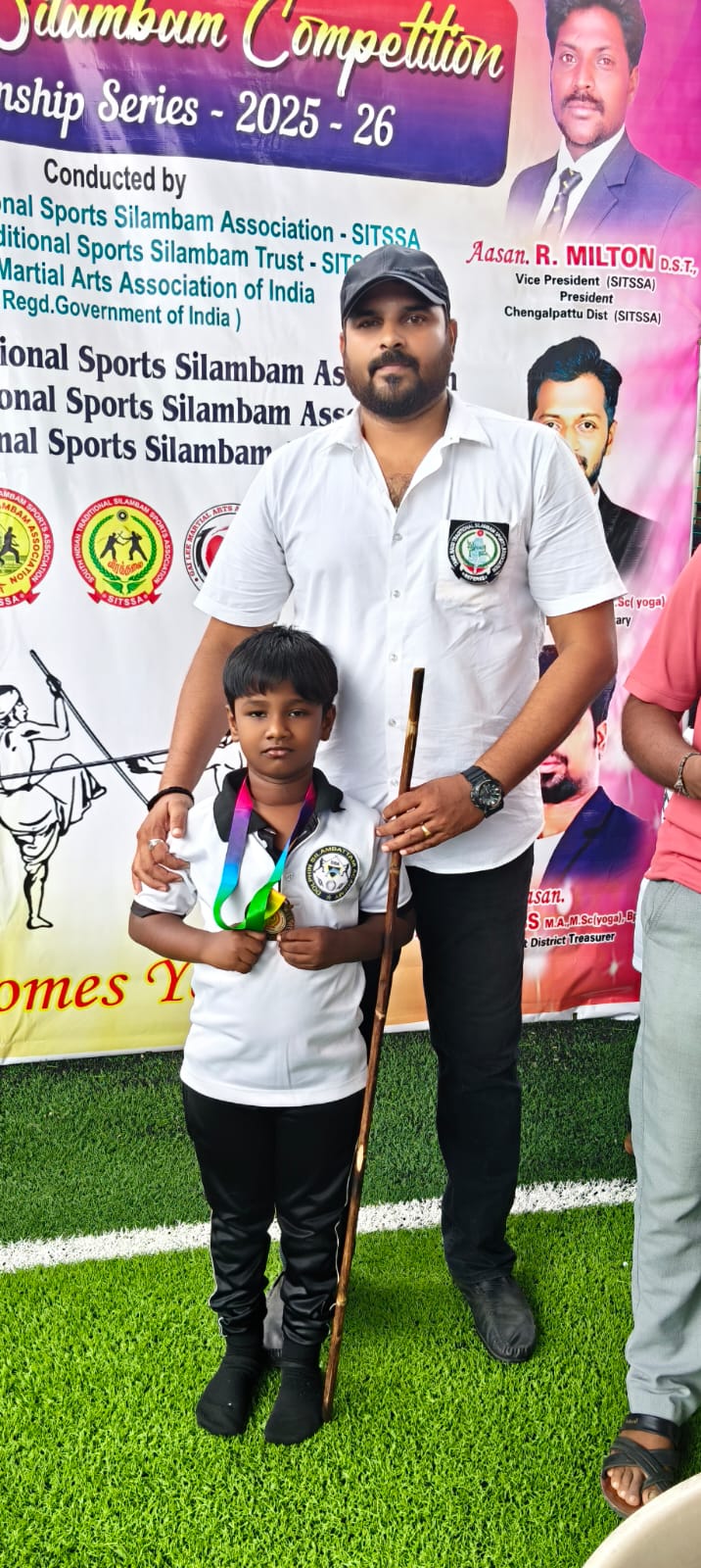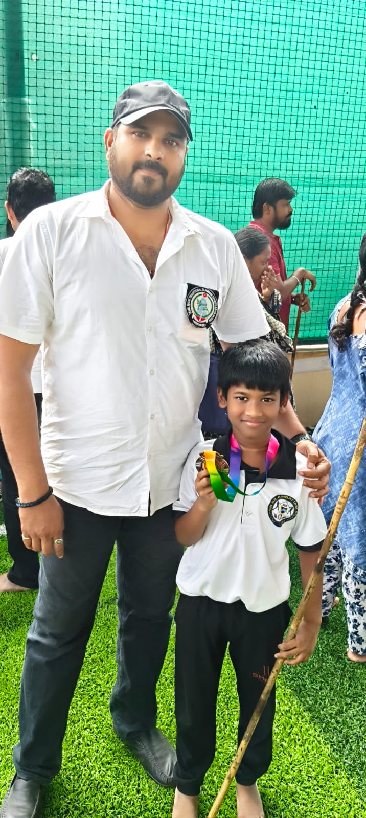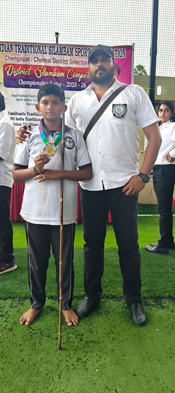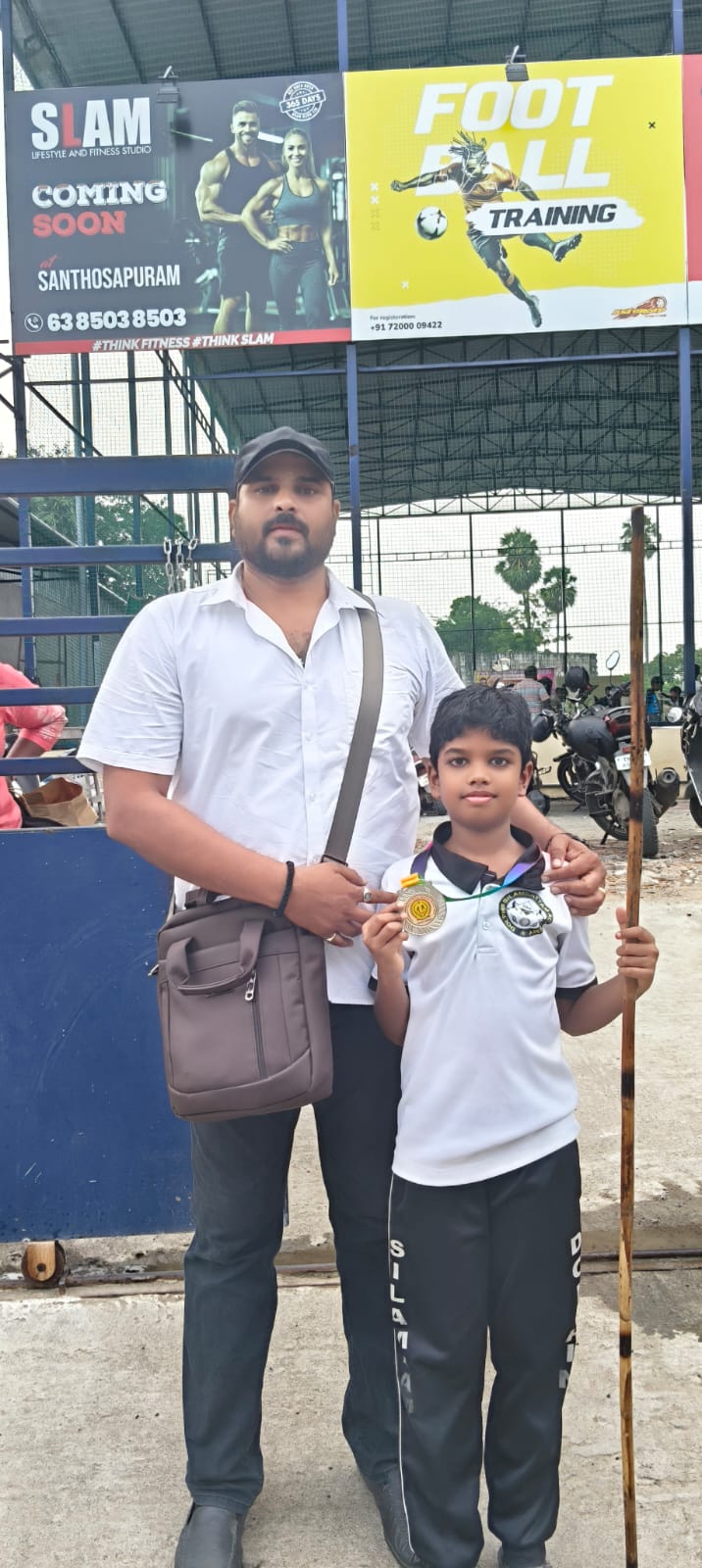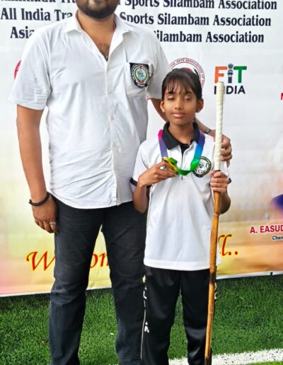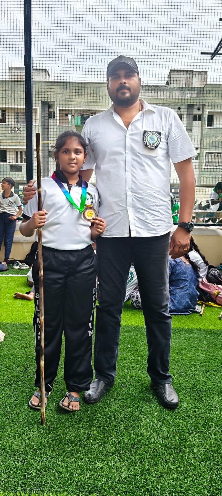 Sanjeev winning the 1st place in State level Silambam championship