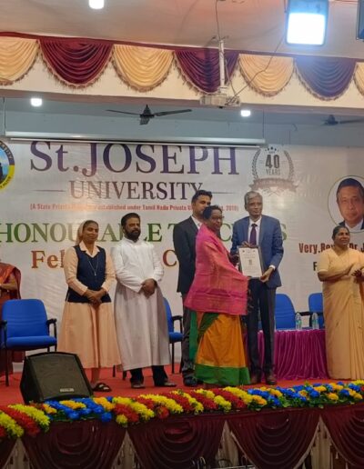 Mrs. Jyostna Magesh, Principal, Sri Sankara Global Academy, Pammal, receiving India K-12 Award 2025 for excellence in promoting experiential learning programs conducted by Eldrok India K-12 Summit held at Taj Willingtown Mews, Chennai on 23rd July 2025