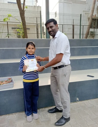 Jana Dhishani of Grade-4 secured 9th place in district level chess tournament.
