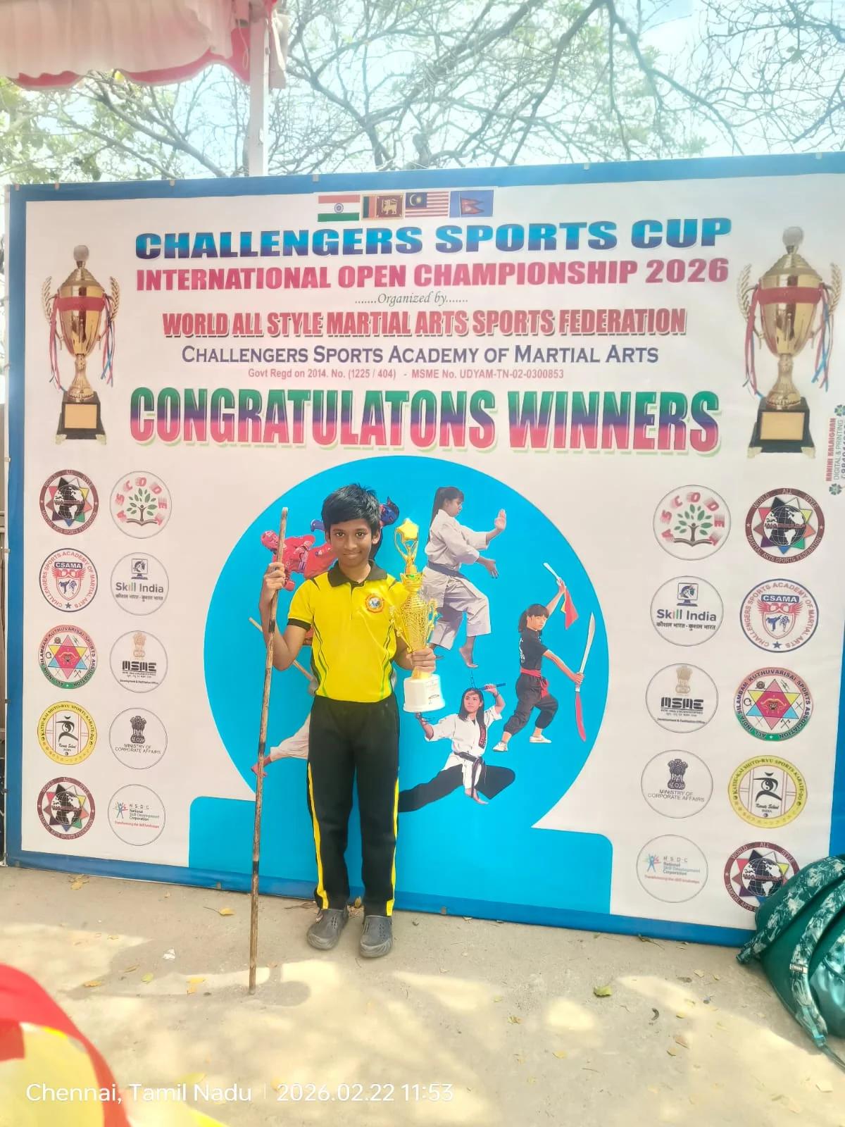 Hearty congrats to Divyesh for securing the 2nd place in the Silambam tournament in Tiruppur.